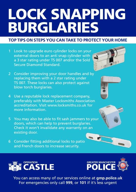Residents are being advised to remain vigilant following a recent rise in lock snap burglaries across the Tonge Moor area. Offenders have been targeting properties with older or vulnerable door locks, often gaining entry quickly and quietly. These incidents have mainly occurred during the evening and overnight, and in most cases, access was gained through the rear doors.